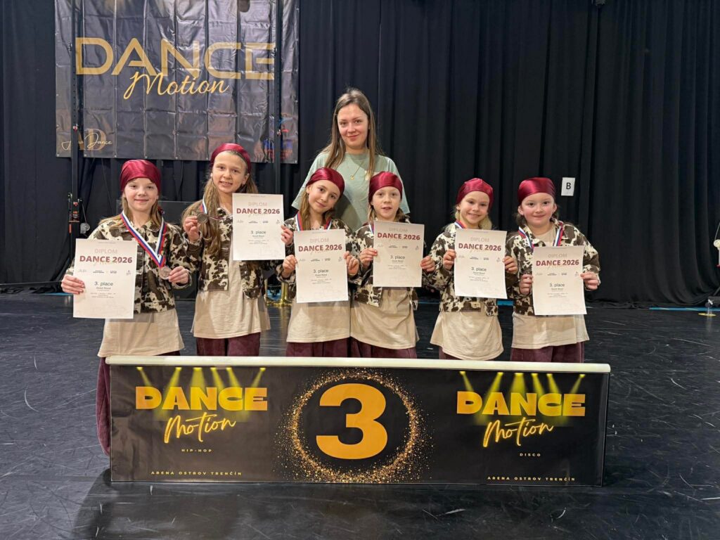 Minulý víkend sa v Trenčíne uskutočnila pohárová súťaž Dance Motion 2026, naši nesmierne talentovaní tanečníci z Deepu si aj na tejto súťaži vybojovali krásne umiestnenia, zároveň získali 7 zlatých, 4 strieborné a 5 bronzových medailí.